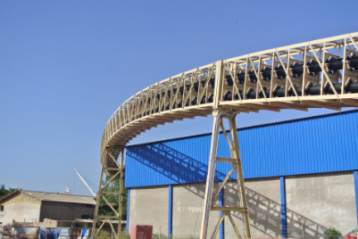 圓管帶式輸送機(jī)是傳統(tǒng)帶式輸送機(jī)的升級(jí)產(chǎn)品,具有不受空間和角度限制及完全封閉高環(huán)保性能的特點(diǎn)。隨著江蘇永鋼集團(tuán)48°大傾角水平轉(zhuǎn)彎圓管帶式輸送機(jī)、寶鋼圓管輸送系統(tǒng)以及塞內(nèi)加爾GCO圓管帶式輸送系統(tǒng)等多個(gè)項(xiàng)目相繼投產(chǎn)使用,我公司已擁有一整套成熟的、具有自主知識(shí)產(chǎn)權(quán)和專(zhuān)利的圓管帶式輸送機(jī)技術(shù),可設(shè)計(jì)和制造管徑為Φ100~Φ650mm系列產(chǎn)品。